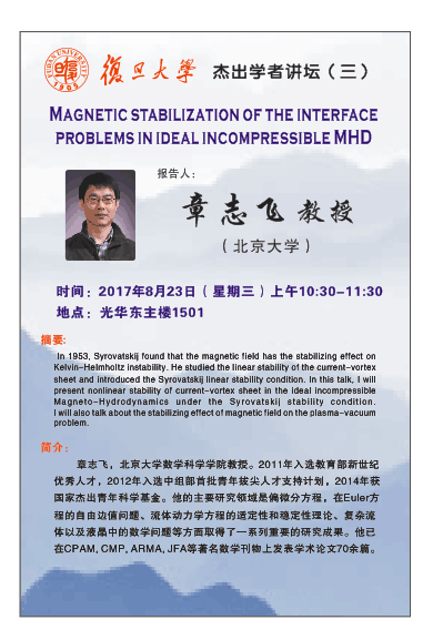 简介:章志飞,北京大学数学科学星空(中国)教授。2011年入选教育部新世纪优秀人才,2012年入选中组部首批青年拔尖人才支持计划,2014年获国家杰出青年科学基金。他的主要研究领域是偏微分方程,在Euler方程的自由边值问题、流体动力学方程的适定性和稳定性理论、复杂流体以及液晶中的数学问题等方面取得了一系列重要的研究成果。他已在CPAM, CMP, ARMA, JFA等著名数学刊物上发表学术论文70余篇。