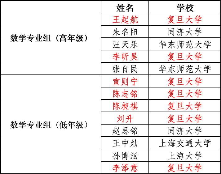 热烈祝贺所有获奖同学!并向热心参与本次竞赛组织和辅导的各位老师表示衷心的感谢!我校学子在决赛中展现出的扎实功底和拼搏精神,充分体现了复旦数学学科拔尖创新人才培养的显著成效,期待更多同学在未来的学科竞赛中勇攀高峰,再创辉煌!