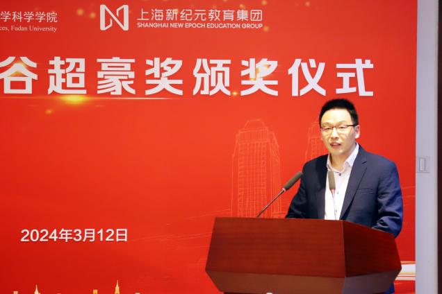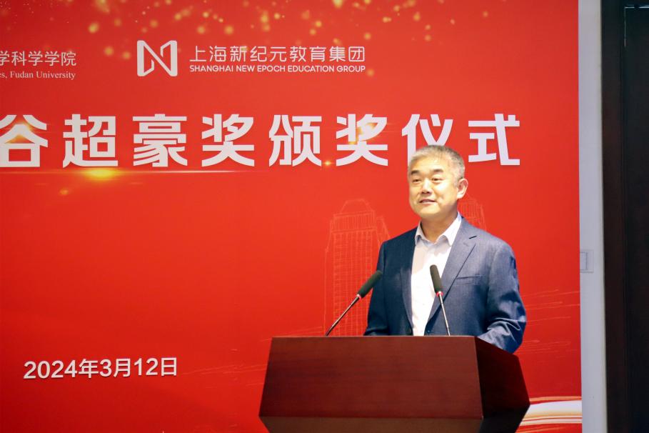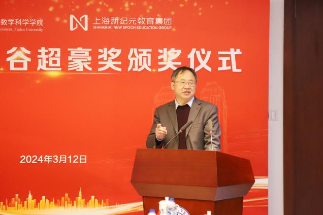 姜育刚副校长在致辞中向鼎力支持学校教育事业、关心数学学科发展的上海新纪元教育集团表示由衷感谢,并希望双方能够继续加深合作,持续推动教育事业发展。他强调,谷超豪先生在70多年的工作生涯中始终将国家、社会的需要看作科学研究的生命所在,把毕生心血都献给了国家的教育事业和科学事业,今日的“复旦人”要继续传承和弘扬谷先生“心有大我、至诚报国”的崇高品格和“严谨务实、勇攀高峰”的治学精神,承担起为国家、社会培养一流人才的重要使命,为建设中国式现代化而创新努力。