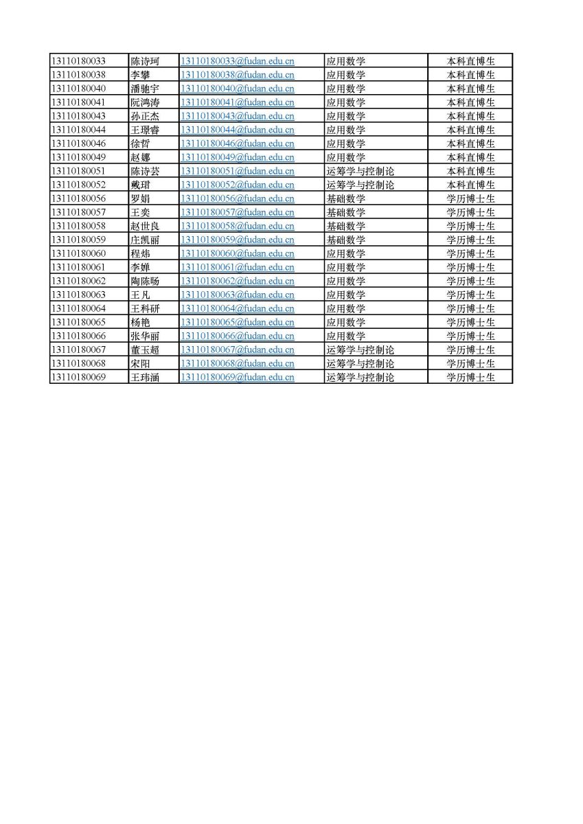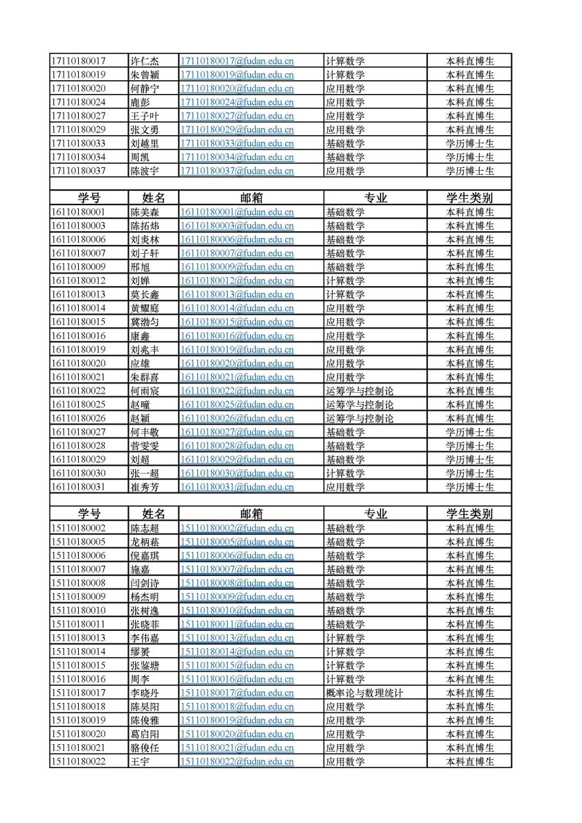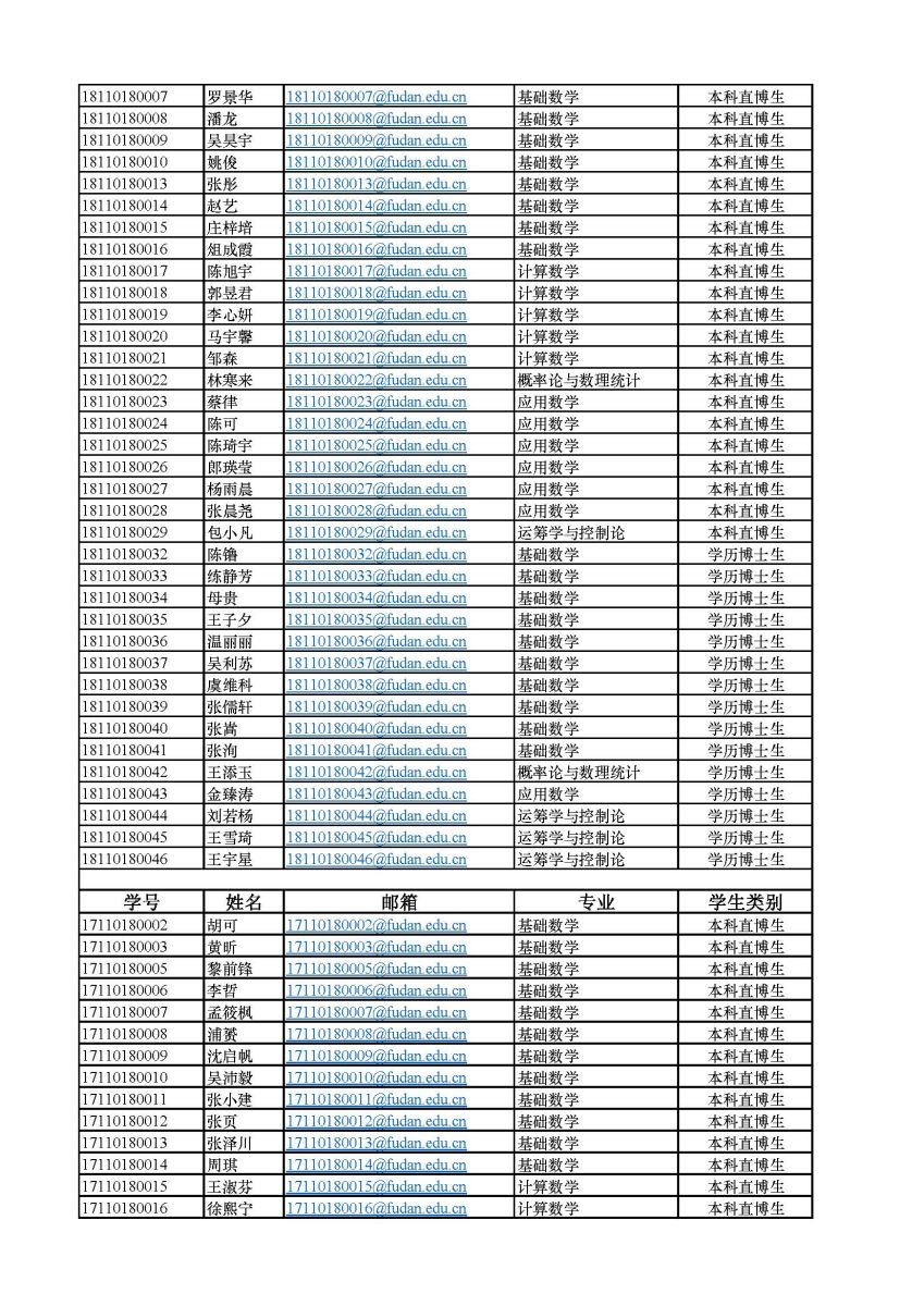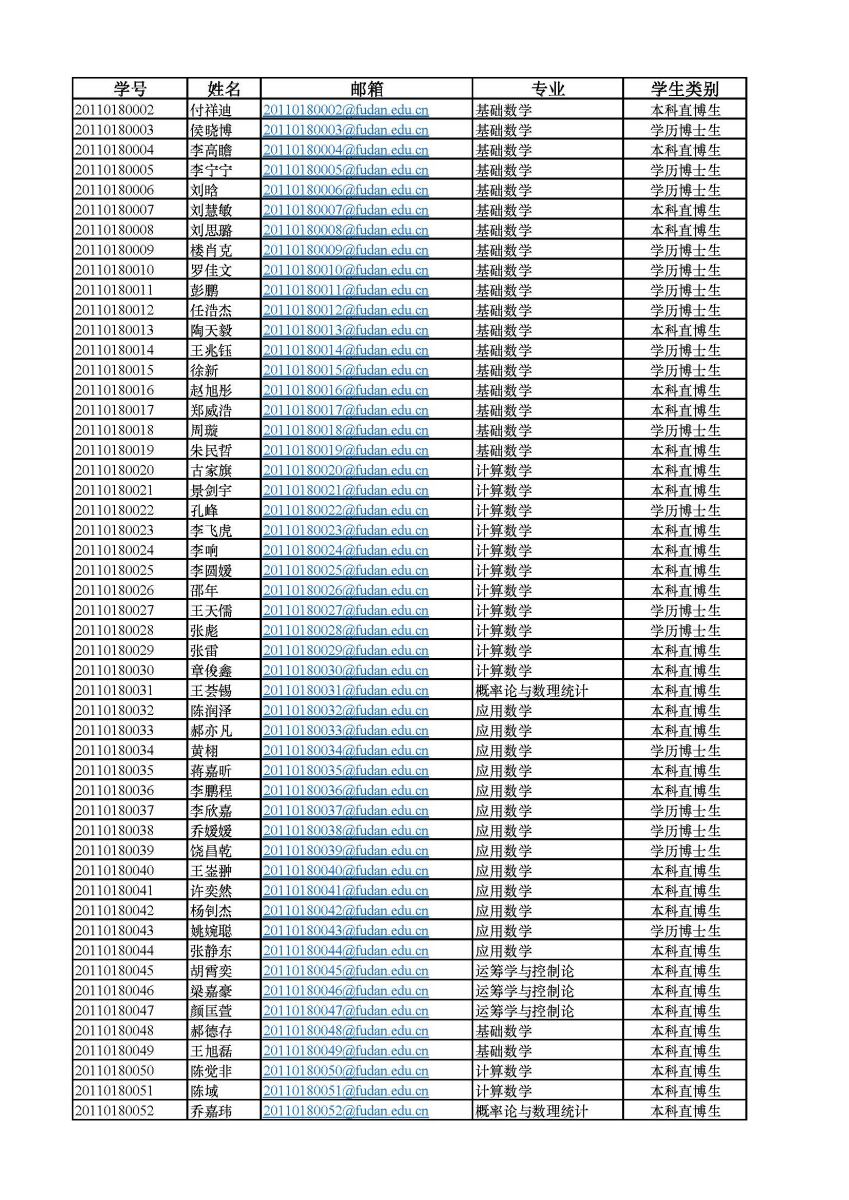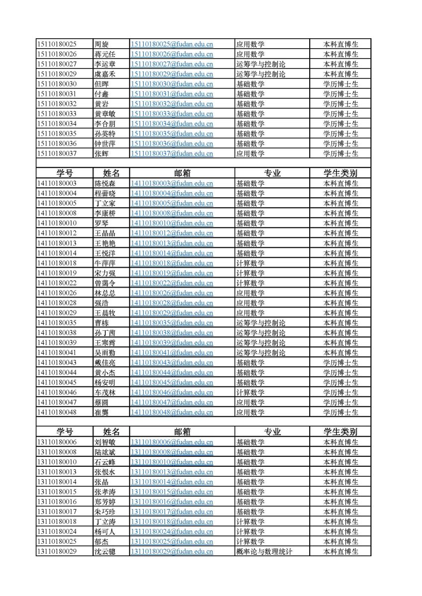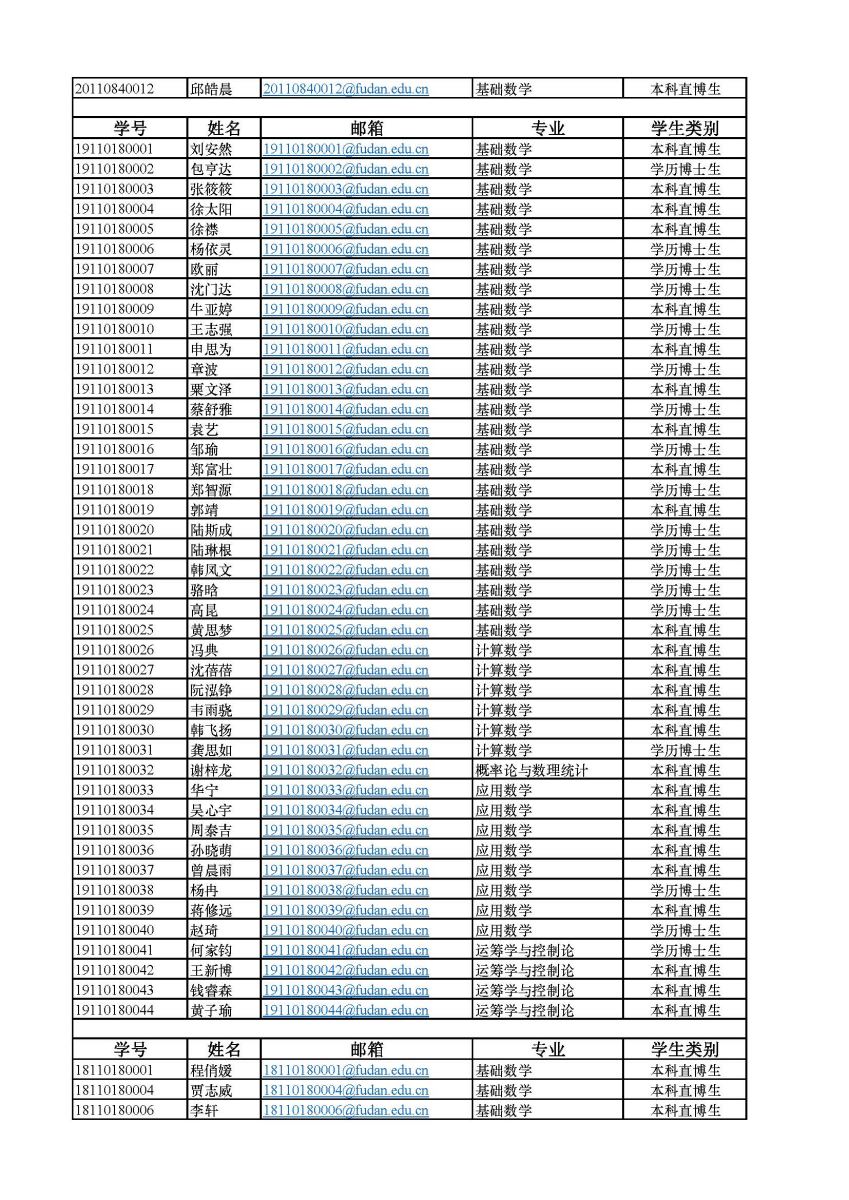 2013-2020复旦大学数学科学星空(中国)博士研究生名册