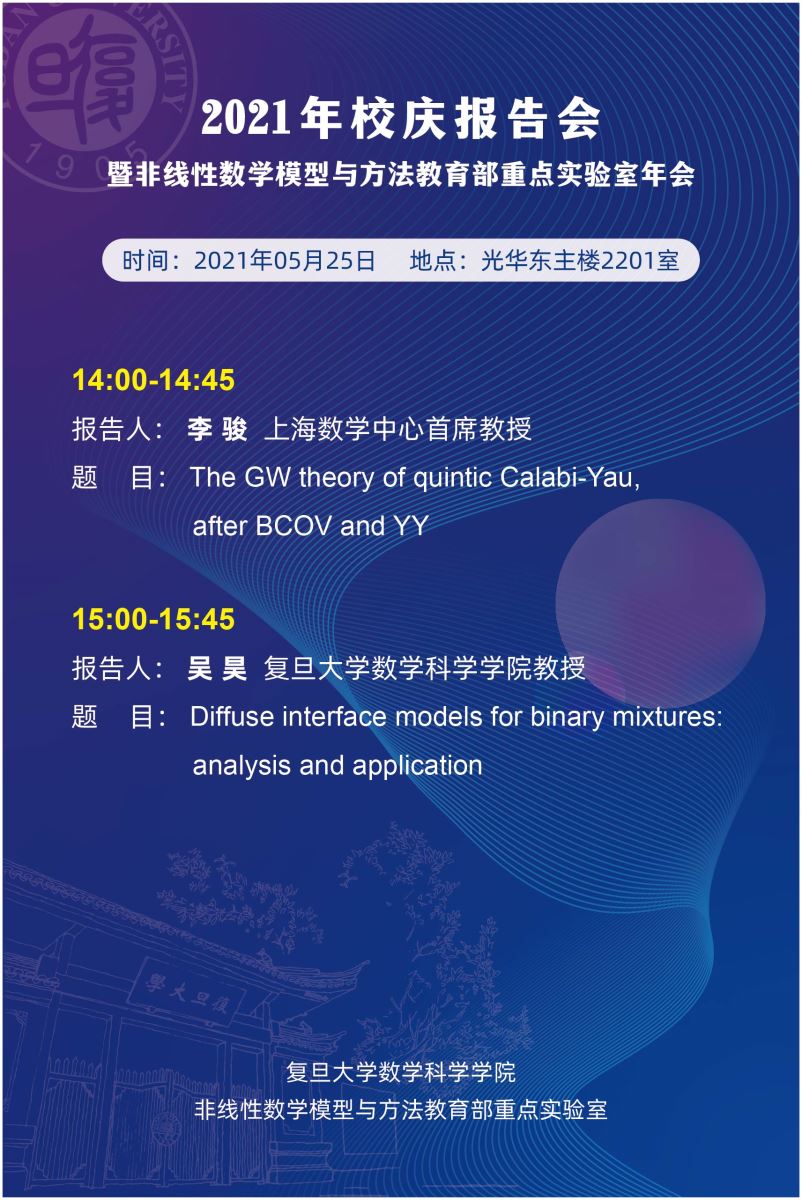 报告人: 李 骏 上海数学中心首席教授