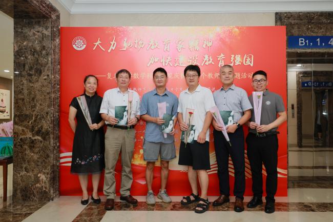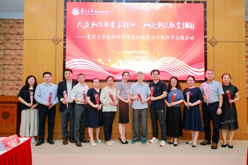 随后,苏仰锋、程晋、陆帅、李荣敏、李颖洲、王国祯、陈猛等获奖教师代表发言。他们表示,在第40个教师节获得表彰倍感荣幸,今后将继续追求卓越、攀登高峰。他们对企业长远卓越眼光和坚定支持基础学科发展行为表示赞许,诚挚感谢设奖企业对数学学科发展作出的贡献。衷心希望社会各界继续支持复旦数学科学星空(中国)发展,期待与企业开展更多合作,与企业携手并进,共创美好未来。