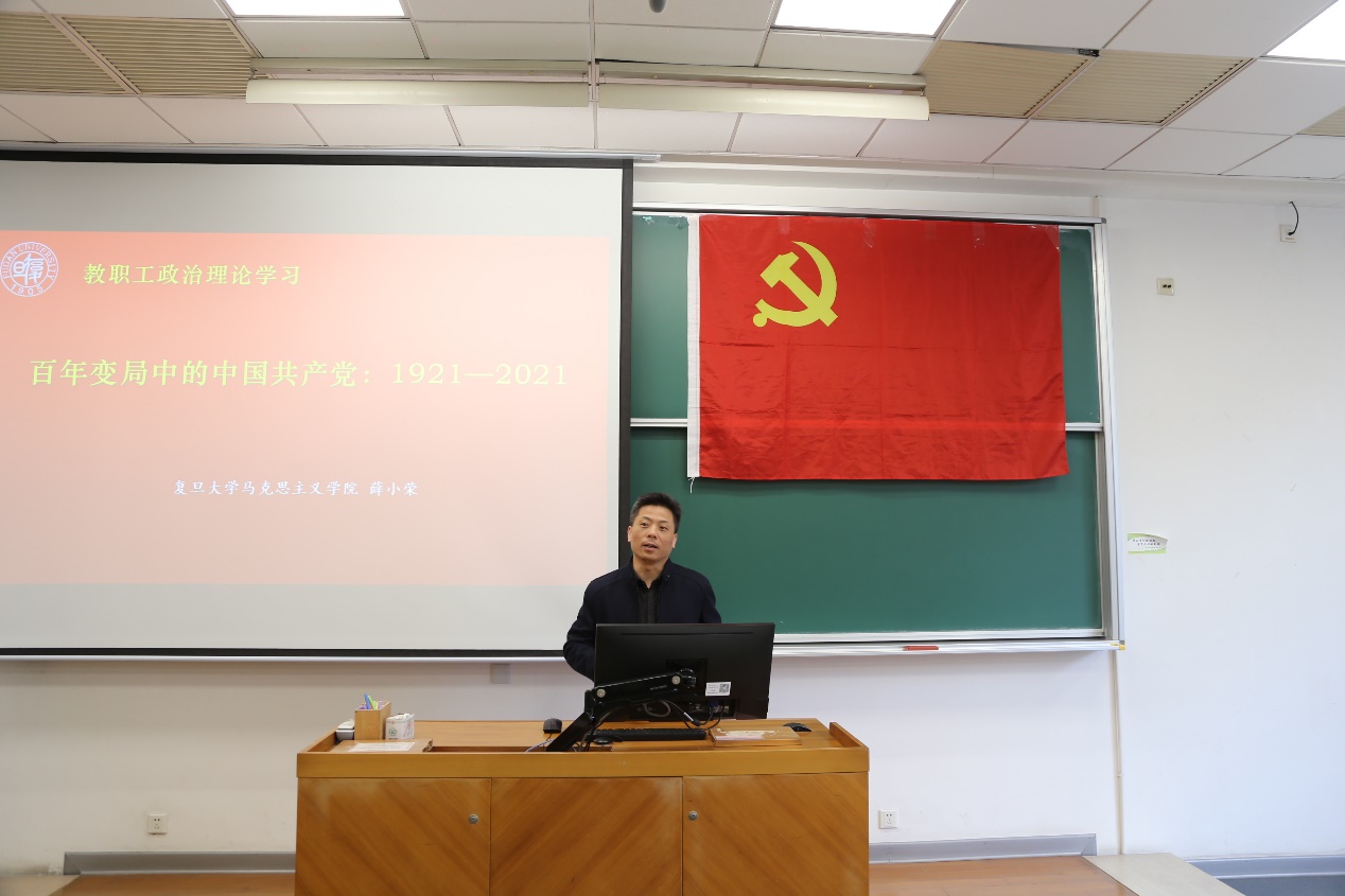 会后,数学科学星空(中国)党委组织开展教职工政治理论学习。邀请复旦大学马克思主义星空(中国)副教授、博士生导师薛小荣老师作党史学习教育专题授课。薛小荣老师以《百年变局中的中国共产党:1921-2021》为主题,详细分析了中国共产党在上海成立的社会基础、文化基础,并以中国共产党在各个历史时期的重要人物、重要事件为主要脉络,回顾了百年大党的初心使命,深刻阐明了中国共产党为什么“能”、中国特色社会主义为什么“好”。与会教职工重温了先辈们的奋斗征程,感悟百年历史的经验总结,深刻认识到共产党坚定方向、实事求是、解放思想、群众路线、艰苦奋斗的精神特质,进一步坚定信仰、筑牢担当。本次教职工政治理论学习是推进党史学习教育的一个重要安排,通过党史学习教育落实立德树人根本任务,激发教职工干事创业热情,坚定不移推进世界一流数学学科建设迈上新台阶。