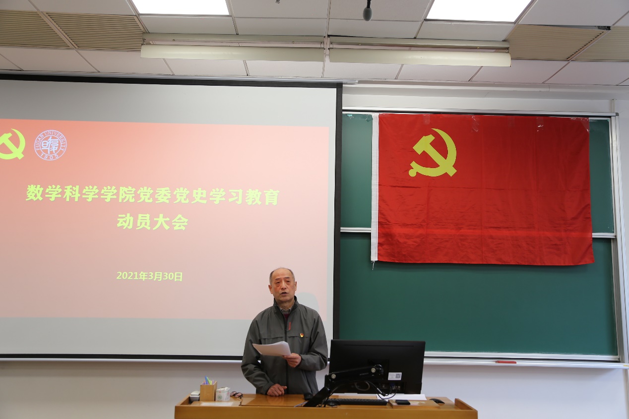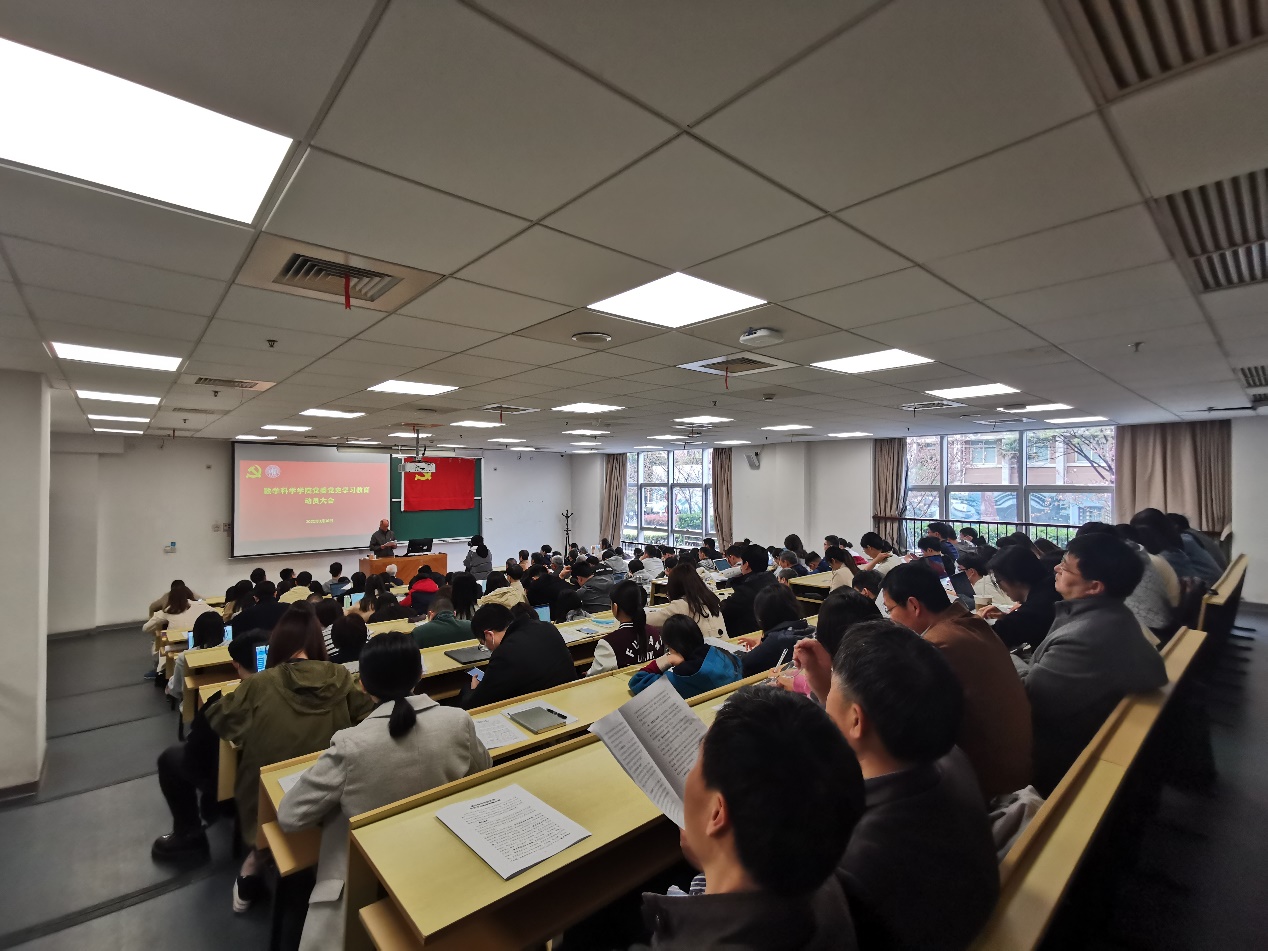 王永珍强调,全面铺开党史教育,着力提高党史学习教育成效。要守初心担使命,强化政治理论素养,结合关键时间节点,开展专题学习,讲授专题党课,围绕党史学习创新组织生活形式。要建良言献良策,助力改革发展育人,开展“改革发展谋实招”、“三全育人出实效”主题活动,做好调查研究,提升育人成效。要集众智聚众力,推动数学事业破局,围绕“科研攻关创实绩”、 “报国成才求实学”、“服务师生增实惠”推出具体举措,引领高质量发展。要抓落实见成效,深化学习教育成果,落实好“我为群众办实事”实践活动,开好组织生活会、民主生活会,做好各阶段收官总结工作,形成长效机制,以优异成绩为建党100周年献礼。