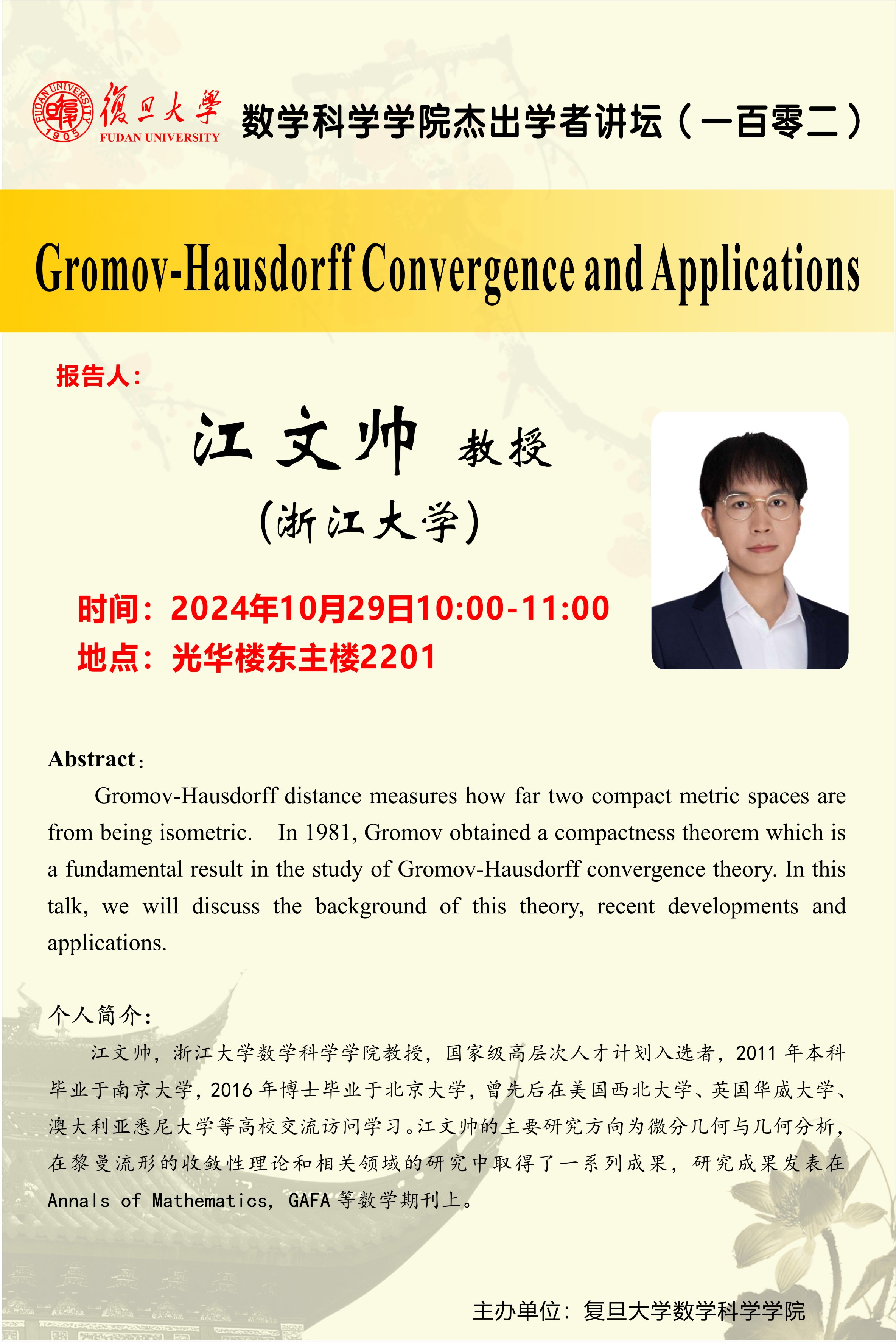 Gromov-Hausdorff distance measures how far two compact metric spaces are from being isometric. In 1981, Gromov obtained a compactness theorem which is a fundamental result in the study of Gromov-Hausdorff convergence theory. In this talk, we will discuss the background of this theory, recent developments and applications.