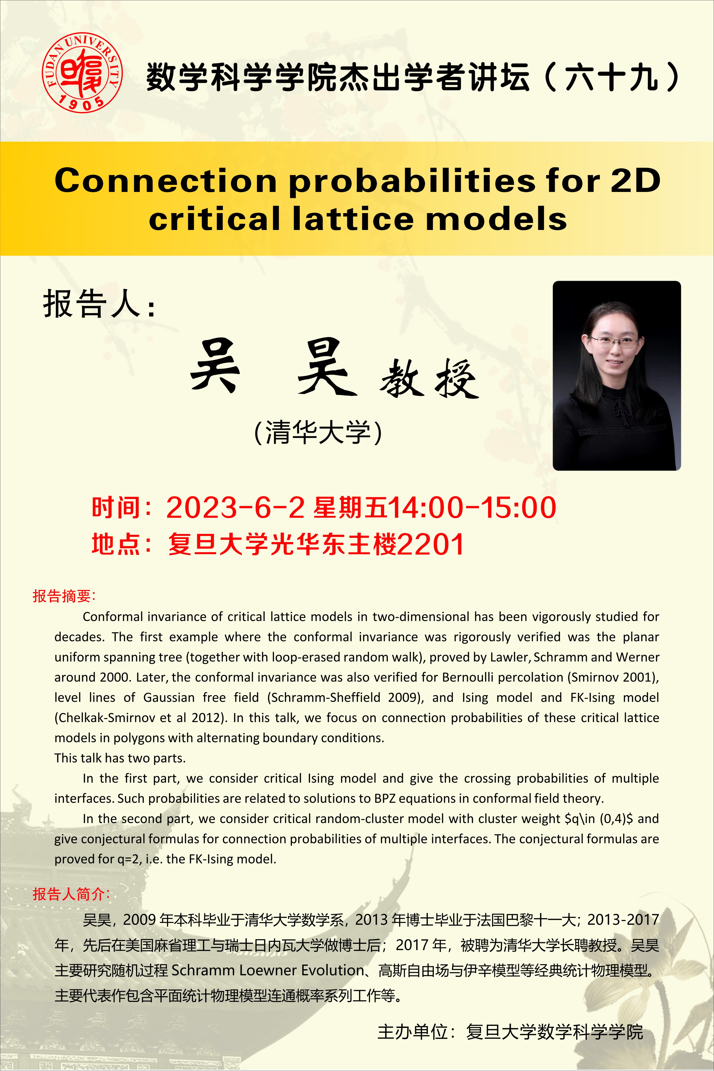 • In the first part, we consider critical Ising model and give the crossing probabilities of multiple interfaces. Such probabilities are related to solutions to BPZ equations in conformal field theory.