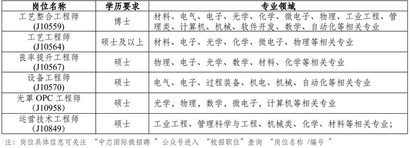 光罩 OPC 工程师(J10958):JanetC@smics.com