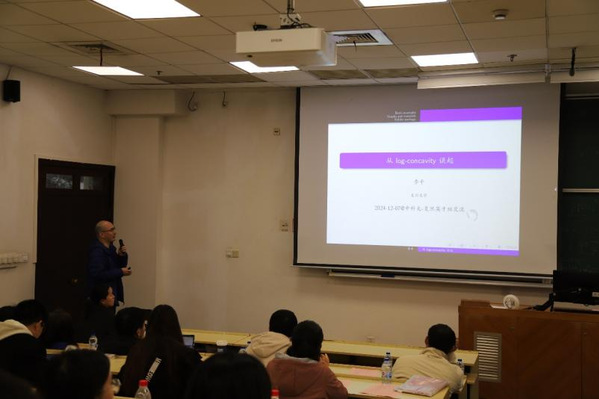 李俊钢教授带来了题为“Hardy不等式及其应用”的科普报告,深入浅出地讲解了这一数学概念及其在现代科学中的应用。李平教授以“从Log-concavity谈起”为题,展开了一场精彩的报告。
