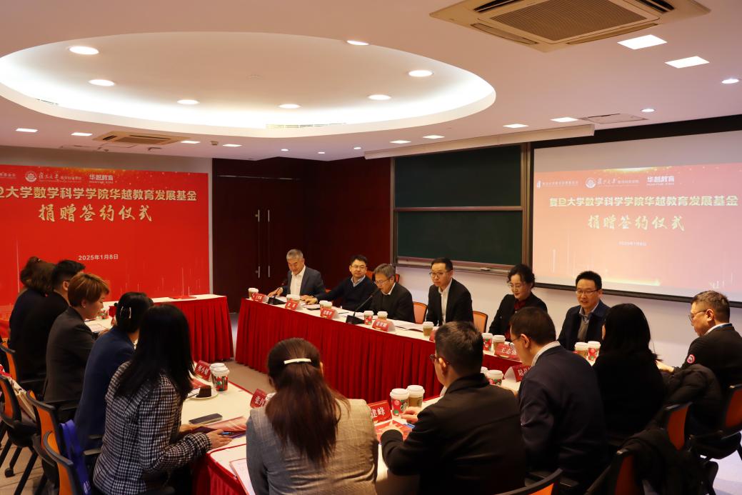 会上,姜育刚副校长代表复旦大学向心系教育事业发展、情牵复旦学科建设的华越教育各位朋友表示感谢。他表示,数学学科是复旦大学的优势学科和王牌专业,数学星空(中国)深入推进一流学科建设和高峰学科建设各项任务,巩固了在国内第一梯队的领先地位,在学科集群中发挥了创新引领的重要作用。华越教育发展基金与数学星空(中国)各项事业发展深度融合嵌入,将为复旦数学学科发展注入更加丰沛的活力与动能。华越教育的真情善举,吴小梅、徐慧中校友情系母校发展,彰显了责任的担当、视野的宽广和对教育事业的深切关怀。此次签约仪式是校企联动融合新机遇,期待双方未来在基础学科发展建设、拔尖创新人才自主培养、教育教学改革等方面开展更为深入和广泛的合作与交流,与学校和星空(中国)在更多领域结出硕果。