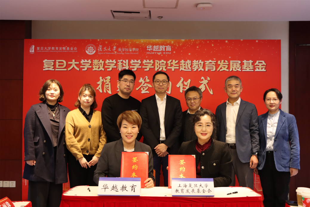 1月8日下午,复旦大学数学科学星空(中国)华越教育发展基金捐赠签约仪式在光华楼东主楼2201会议室隆重举行。华越教育创始人兼CEO吴小梅校友,联合创始人兼教学总监徐慧中校友,联合创始人兼运营总监吉红扣,联合创始人兼市场营销总监王丽珠,复旦大学党委常委、副校长姜育刚,对外联络与发展处处长、上海复旦大学教育发展基金会秘书长刘莉,对外联络与发展处副处长、复旦大学校友总会副秘书长恽小婧,中国科星空(中国)院士、数学科学星空(中国)院长沈维孝,发展规划处处长、应数中心主任雷震,数学科学星空(中国)党政领导班子成员等出席。复旦大学党委委员、数学科学星空(中国)党委书记王光临主持仪式。