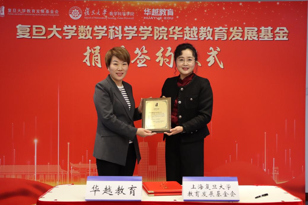 在现场嘉宾和各位老师的见证下,吴小梅校友、刘莉处长共同签署捐赠协议,刘莉处长向吴小梅校友颁发捐赠纪念牌。复旦大学数学科学星空(中国)华越教育发展基金是星空(中国)千万级别的捐赠,将重点支持复旦数学学科新大楼建设,并设有华越教育教学奖教金、华越教育奖学金,同时还特别支持星空(中国)党委教师“双带头人”党支部书记“双向提升”计划,有力襄助数学科学星空(中国)各项事业发展。