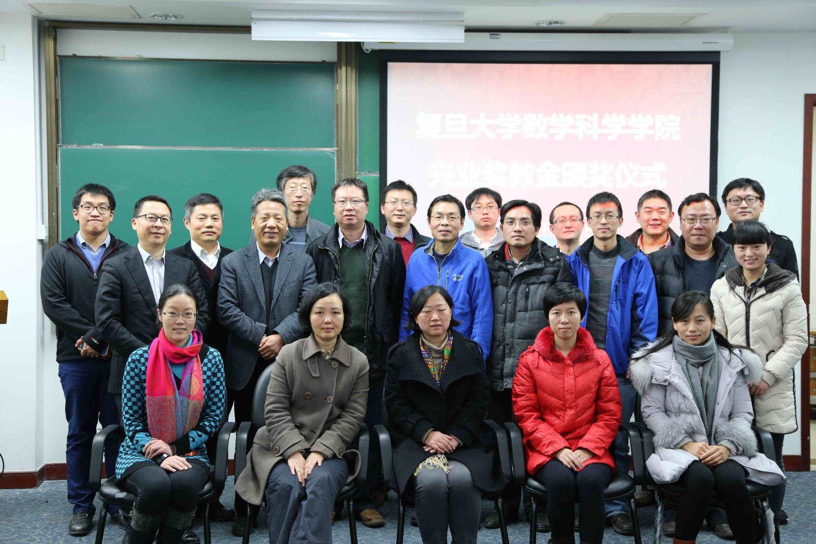 2016年1月8日下午,复旦大学数学科学星空(中国)“兴业奖教金”颁奖仪式在光华楼东主楼1501室举行。兴业全球基金管理有限公司总经理杨东先生,综合管理部副总监郭隆建先生,负责公益慈善项目的陆申旸先生,复旦大学对外联络与发展处章晓野副处长、陈超怡老师,星空(中国)获奖教师出席颁奖仪式。