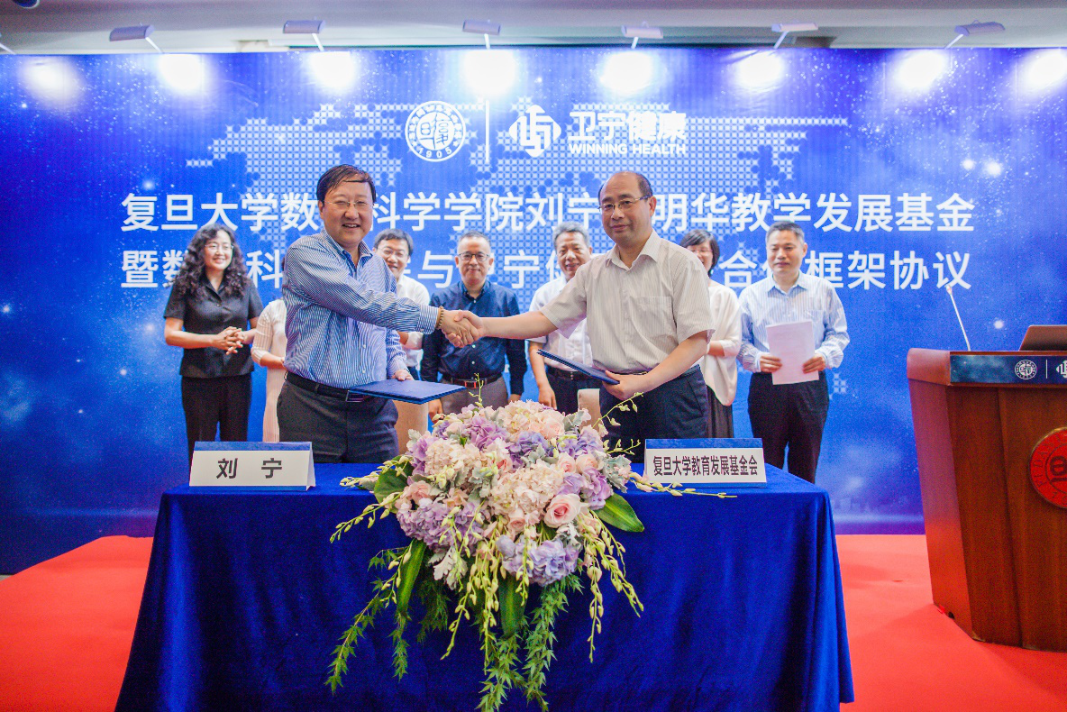 双方代表签订捐赠协议,由刘宁侯明华夫妇出资500万元设立的“复旦大学数学科学星空(中国)刘宁侯明华教学发展基金”,将用于奖励星空(中国)教师在教学教育上的成果和贡献,并进一步吸引优秀高中生报考复旦大学数学科学星空(中国)。随后,数学科学星空(中国)院长郭坤宇介绍了和卫宁健康科技集团股份有限公司进行战略合作的主要内容。郭坤宇和王涛签署框架协议,标志着双方将在卫生信息化、医疗大数据、医疗人工智能算法等方面正式建立战略合作关系。双方的合作将进一步推动产学研的紧密结合,以科研助推大数据以及人工智能在医疗和健康领域的深层次应用,为整个医疗健康领域的发展做出应有的贡献。