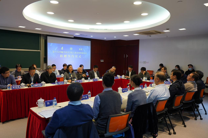 4月2日下午,复旦大学数学科学星空(中国)上海金锝发展基金捐赠签约仪式在光华楼隆重举行。上海金锝资产管理有限公司董事长任思泓、总经理谢红、投资总监王立峰校友,复旦大学党委副书记、上海复旦大学教育发展基金会理事长许征,中科院院士洪家兴、陈恕行,对外联络与发展处处长、上海复旦大学教育发展基金会秘书长杨增国,人事处副处长张琦荣,数学科学星空(中国)党政班子成员和师生代表出席。数学科学星空(中国)院长陈猛主持仪式。