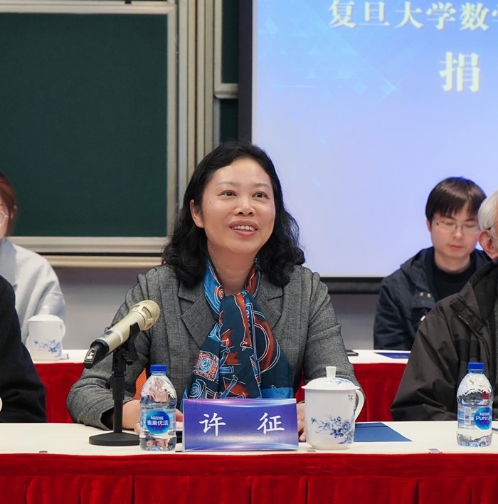 许征副书记代表学校和上海复旦大学教育发展基金会向任思泓董事长一行表示热烈欢迎,对上海金锝资产管理有限公司慷慨捐资支持复旦大学教育事业的崇高善举表示诚挚感谢。她表示,学校历来重视高水平人才队伍建设,着力构建“卓学-卓识-卓越”阶梯式人才培育体系,强调引育并举,促进人才根系更加发达。此次捐资设立教育基金,不仅体现了创始人团队的赤诚之心,更彰显了回馈社会、支持教育、关爱人才的高贵品格。学校事业的发展、数学学科的壮大离不开社会各界和海内外校友的关心和支持,期待“十四五”期间在更多心系复旦的社会各界支持下,为国家和社会培养更多世界一流人才。