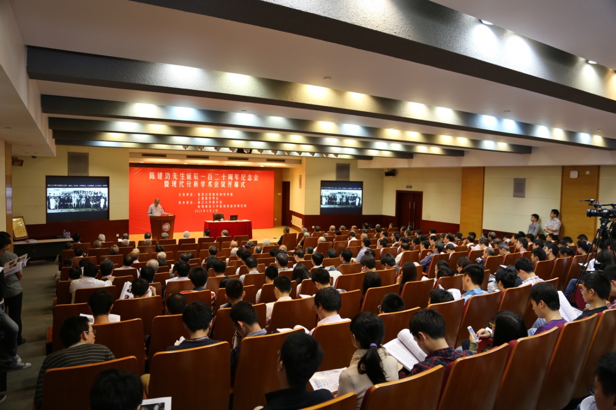 当天上午,光华楼东辅楼102报告厅座无虚席,从当年亲身受过陈先生教诲的及门弟子,到从学术上说应该算是陈先生第四代、第五代传人的青年学生,大家济济一堂,共同缅怀陈老的道德文章,大家风范。陈建功先生曾就读过的杭州师范大学、工作过的浙江大学数学系的部分教师参加了会议。杭州师范大学校长叶高翔、 浙大数学系系主任先后发言。夏道行先生做了关于陈建功生平与学术贡献的报告;陈建功先生的次子、原中科院数学研究所陈翰麟研究员作为家属代表发言。陈建功先生在复旦大学培养的学生忻鼎稼(由朱洪教授代读书面发言)、任福尧、张开明等纷纷发言, 追述陈建功先生的品格和精神。