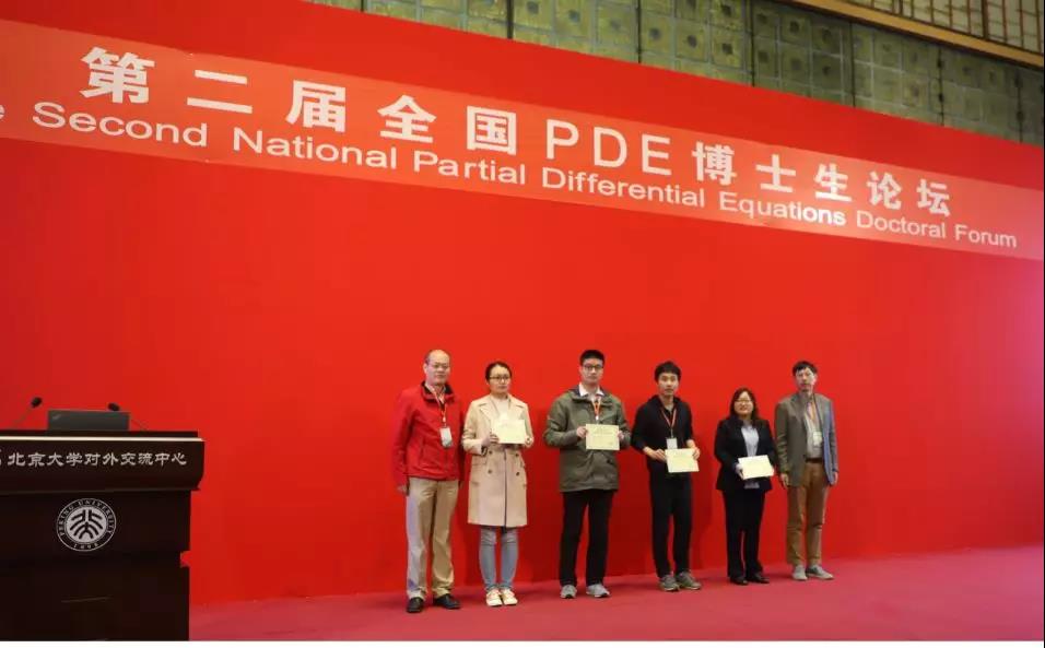 2019年10月11日,第二届全国PDE博士生论坛开幕式在北京大学召开。我院2018届博士生、现香港科技大学研究助理教授蔡圆获得全国偏微分方程优秀博士论文奖;优秀博士论文提名奖获得者分别是:陈洪葛(武汉大学)、曹蕾(河南大学)、刘彦麟(中国科学技术大学)、韦韡(复旦大学)。