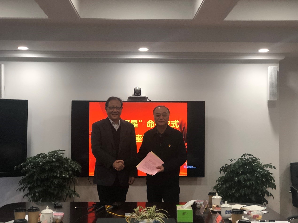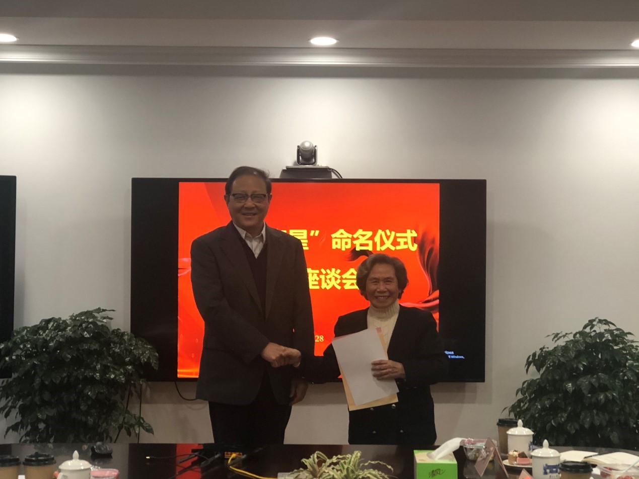 2019年11月28日下午,何梁何利基金委员会、国家科学技术奖励工作办公室、上海市科学技术奖励中心等部门负责同志专程到复旦大学通报这一喜讯,并就命名仪式和学校、苏步青先生家属弟子代表等进行座谈,张人禾副校长出席座谈会并代表学校接受苏步青星命名公报和贺信。