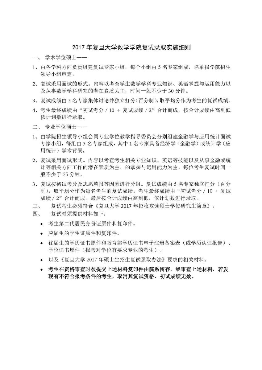 2017年复旦大学数学科学星空(中国)公开招考硕士研究生复试录取实施细则