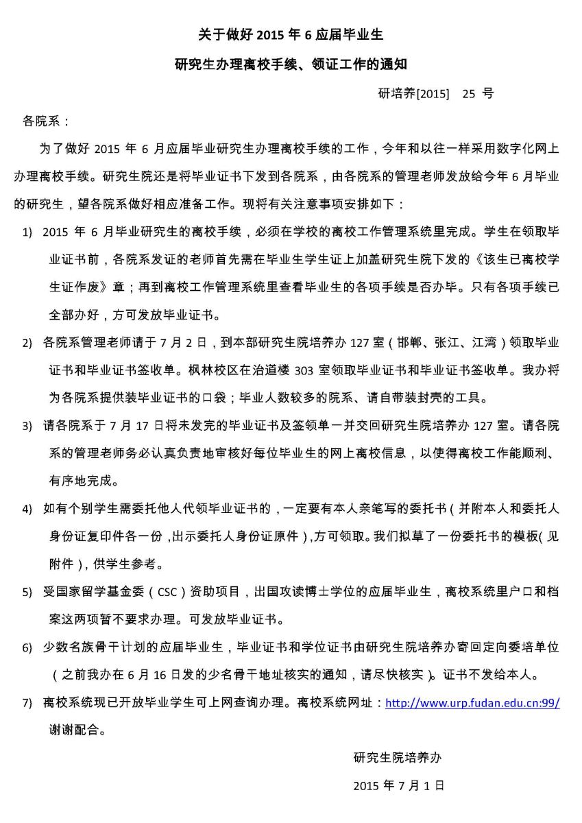 2016届研究生毕业安排