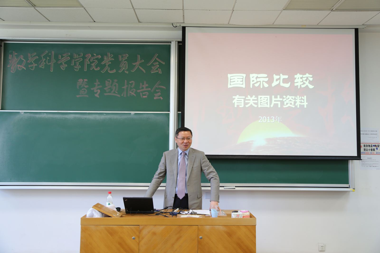 2013年4月2日,数学科学星空(中国)全体党员大会暨专题报告会在光华楼西辅楼104室举行。星空(中国)党委书记侯力强老师向全体教工党员和学生党员报告分党委2012年度工作。复旦大学特聘教授、日内瓦外交与国际关系星空(中国)客座教授、著名学者张维为教授为全体党员作了题为“中国崛起与制度自信”的专题报告。
