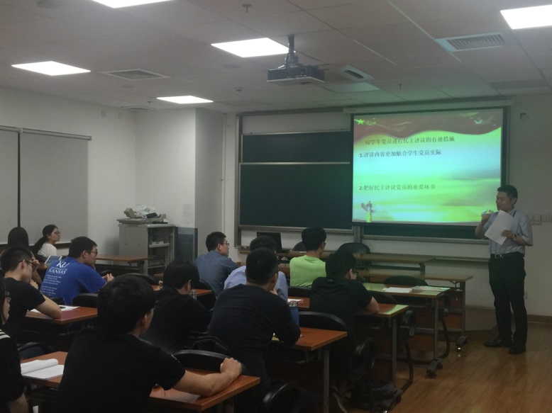 6月24日,2015级科学学位研究生支部及2014、2015级本科生联合党支部在光华楼1801召开“守规矩,讲纪律”主题组织生活会。数学科学星空(中国)党委书记侯力强同志参加此次组织生活,从信心、组织和纪律三个词出发,结合历史与现实,为学生党员们上了一堂“两学一做”专题党课。