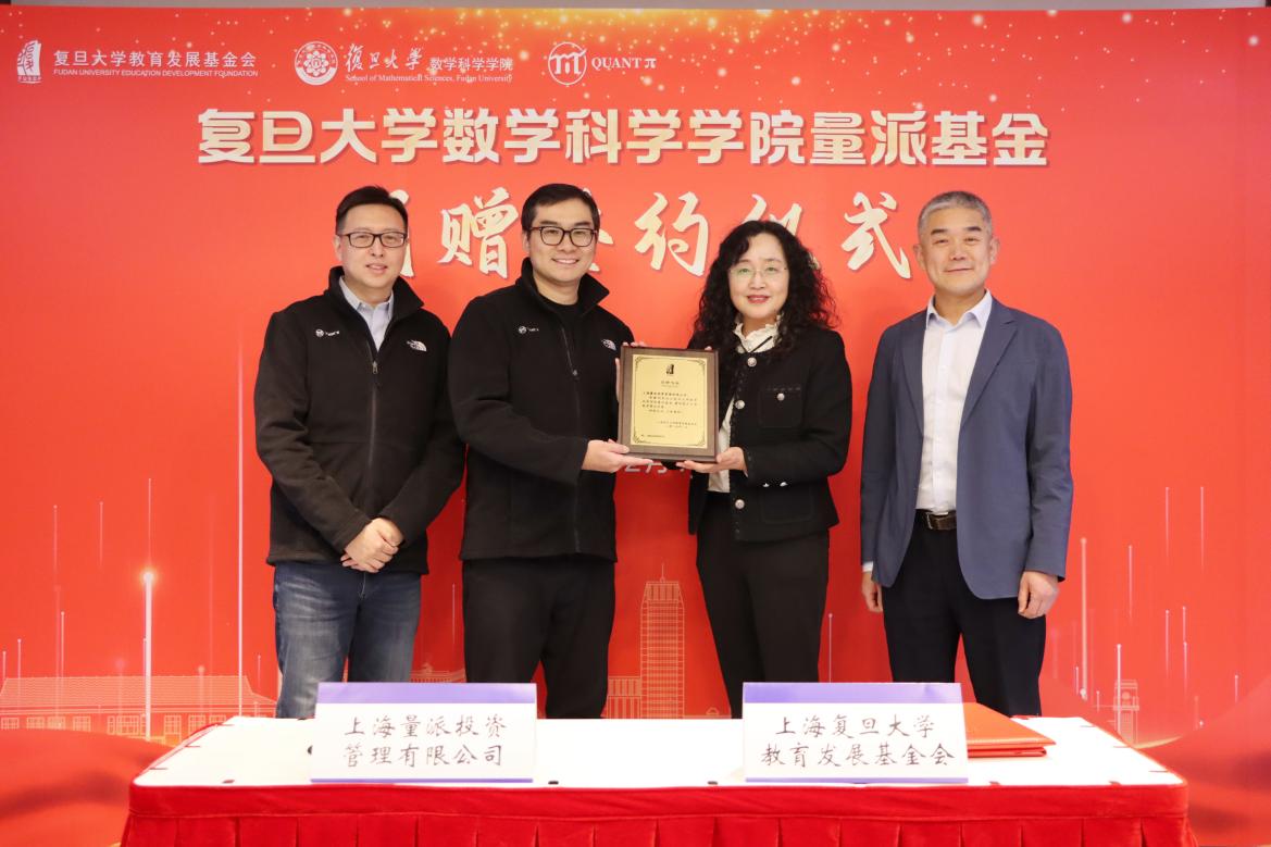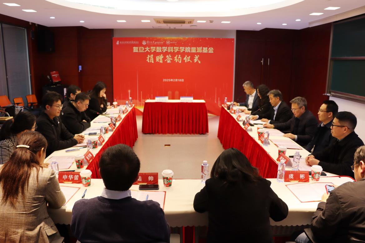 2月18日下午,复旦大学数学科学星空(中国)量派基金捐赠签约仪式在光华楼东主楼2201会议室隆重举行。上海量派投资管理有限公司创始人、首席执行官孙林,创始人、首席技术官余航,创始人、首席财务官郭彦君,品牌总监赵若帆,中国科星空(中国)院士、复旦大学副校长马余刚,对外联络与发展处处长、上海复旦大学教育发展基金会秘书长刘莉,上海复旦大学教育发展基金会项目主管张丹枫,中国科星空(中国)院士、数学科学星空(中国)院长沈维孝,数学科学星空(中国)党政领导班子成员等出席活动。复旦大学党委委员、数学科学星空(中国)党委书记王光临主持仪式。