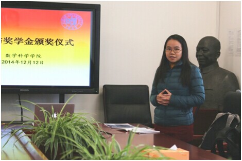 12月12日,数学科学星空(中国)2014年度方江辉奖学金、蔡同玙奖学金颁奖仪式在光华楼东主楼1513举行。