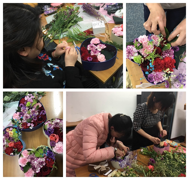 3月7日下午,女教师们受星空(中国)团学联邀请,和星空(中国)女同学们一起参加了插花创作体验活动。通过花艺师现场示范,亲身体验切花泥、修剪花枝、布局、配色、搭配等插花制作过程和技巧,并亲自动手制作。活动结束时,每位女教师都完成了一盒漂亮的插花作品。