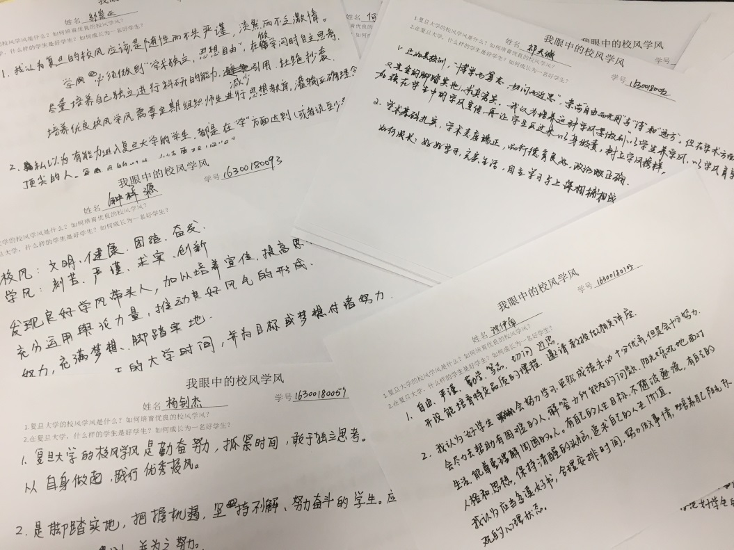各班级围绕“校风学风”、“复旦好学生”等主题开展了深入的讨论,以下是部分同学的讨论内容: