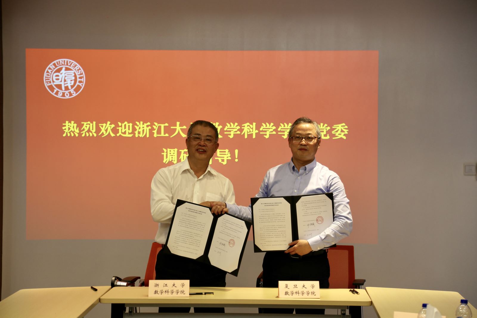 座谈会上,双方就如何做好党的政治建设、组织建设、宣传、纪委监督及统战工作进行充分的学习交流,讨论气氛热烈。基于数学学科的特点,如何进一步发挥分党委的政治核心作用,凝心聚力,提升党建工作活力,加强支部战斗力和党员积极性,推进党建工作与建设世界一流大学的目标相结合,将党建及思想政治教育工作融入到事业发展的实践中,做到与培养一流人才、创造一流成果、提供一流社会服务相统筹,是双方共同关心和努力的方向。交流期间,双方签署了基层党组织联学联建合作备忘录,将充分利用各单位党建资源,定期开展党建活动,共享党建工作信息,交流党建工作经验,共同组织开展党建研讨。复旦大学数学科学星空(中国)与浙江大学数学科学星空(中国)历史渊源深厚。通过本次调研座谈加深了双方党建工作的交流,实现了合作创新,加强沟通、互相支持,建立了“共建组织、共同学习、共享资源、共谋发展”的党建工作新举措。