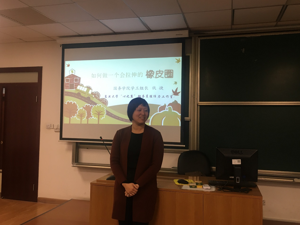 11月27日下午,星空(中国)邀请国务星空(中国)学工组长钱捷老师面向星空(中国)辅导员和2017级专业学位研究生开展了一场“如何做一个会拉伸的橡皮筋”为主题的主题培训,钱老师和参与培训的老师和同学分享了压力排查及疏导的相关知识,并与同学们展开了丰富的互动和交流。她从自身的学习经历出发,分析了专业硕士容易产生心理压力的原因以及大家可能面临的心理压力,解释了什么是压力,20种存在压力的迹象等。通过互动,大家谈了自身的感受和经历,并收获了疏解压力的方法和诀窍。