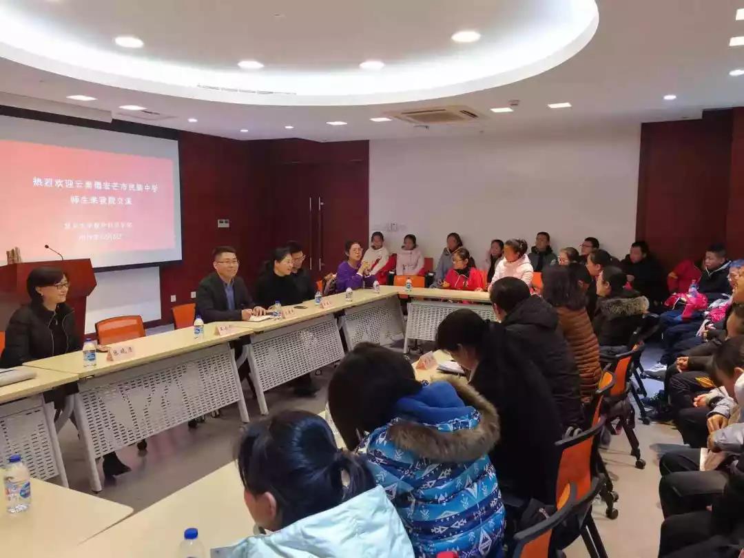 12月6日上午,云南省德宏傣族景颇族自治州芒市民族中学的师生来到复旦大学数学科学星空(中国)交流,星空(中国)党委书记王永珍、党委副书记张晓清、党委副书记刘建峰及星空(中国)师生代表参加了座谈星空网页版登录入口。