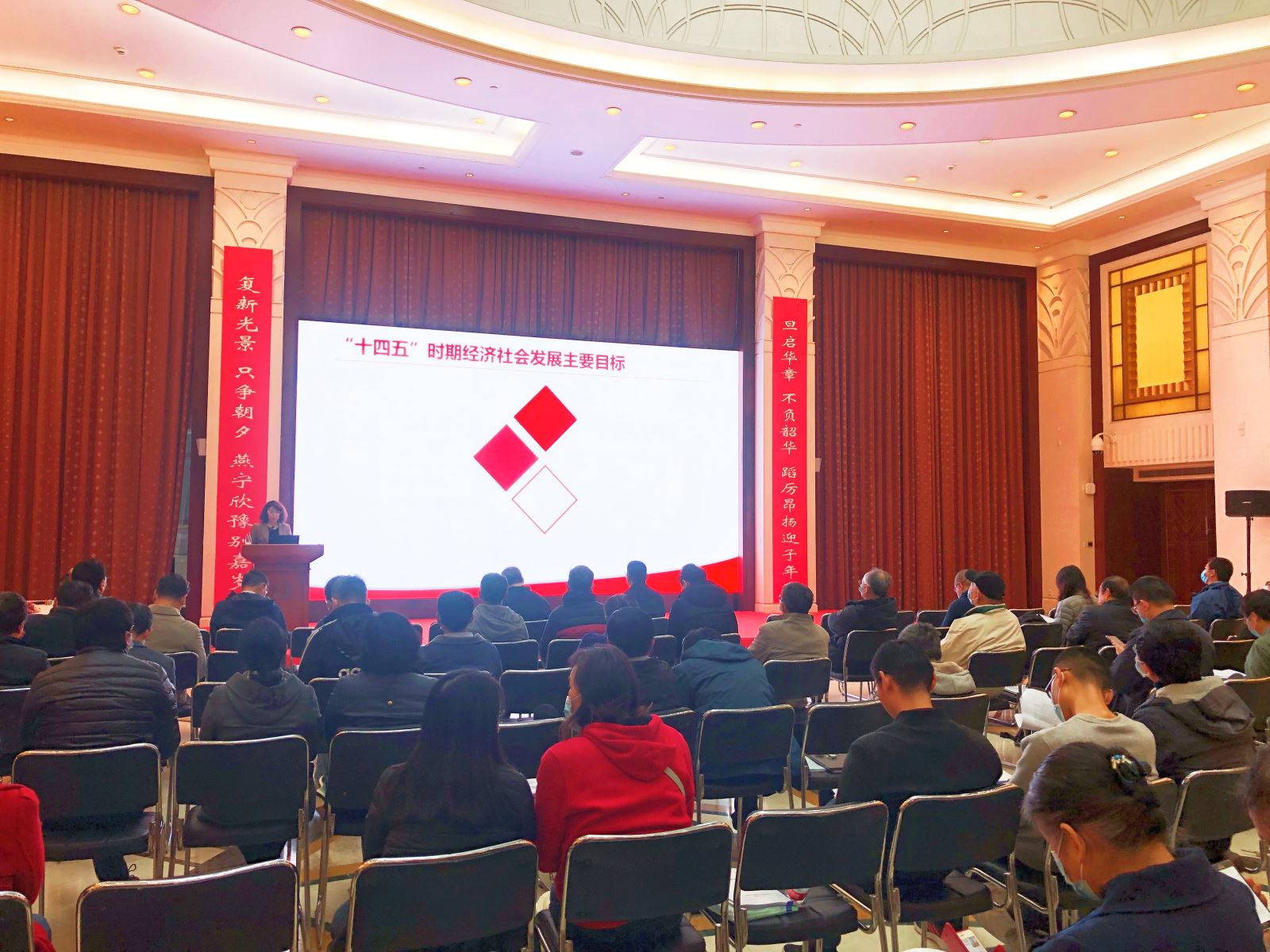 吴力波教授以《十九届五中全会精神宣讲》为主题,围绕十九届五中全会总体精神和全会有关科技创新的重要论述,结合我校“十三五”期间在科技创新领域的表现及“十四五”期间我校在科技创新领域的相关规划设想,对全会精神作了系统阐述和深刻讲解。同时,吴教授还通过对数学学科在人才培养、师资队伍、国际发文表现等方面数据的横向比较,对数学学科相关内容进行了梳理,鼓励数学学科教师在加强基础研究、注重原始创新的同时,推进学科交叉融合,在应用型领域和交叉性学科领域多加探索,更多发力。