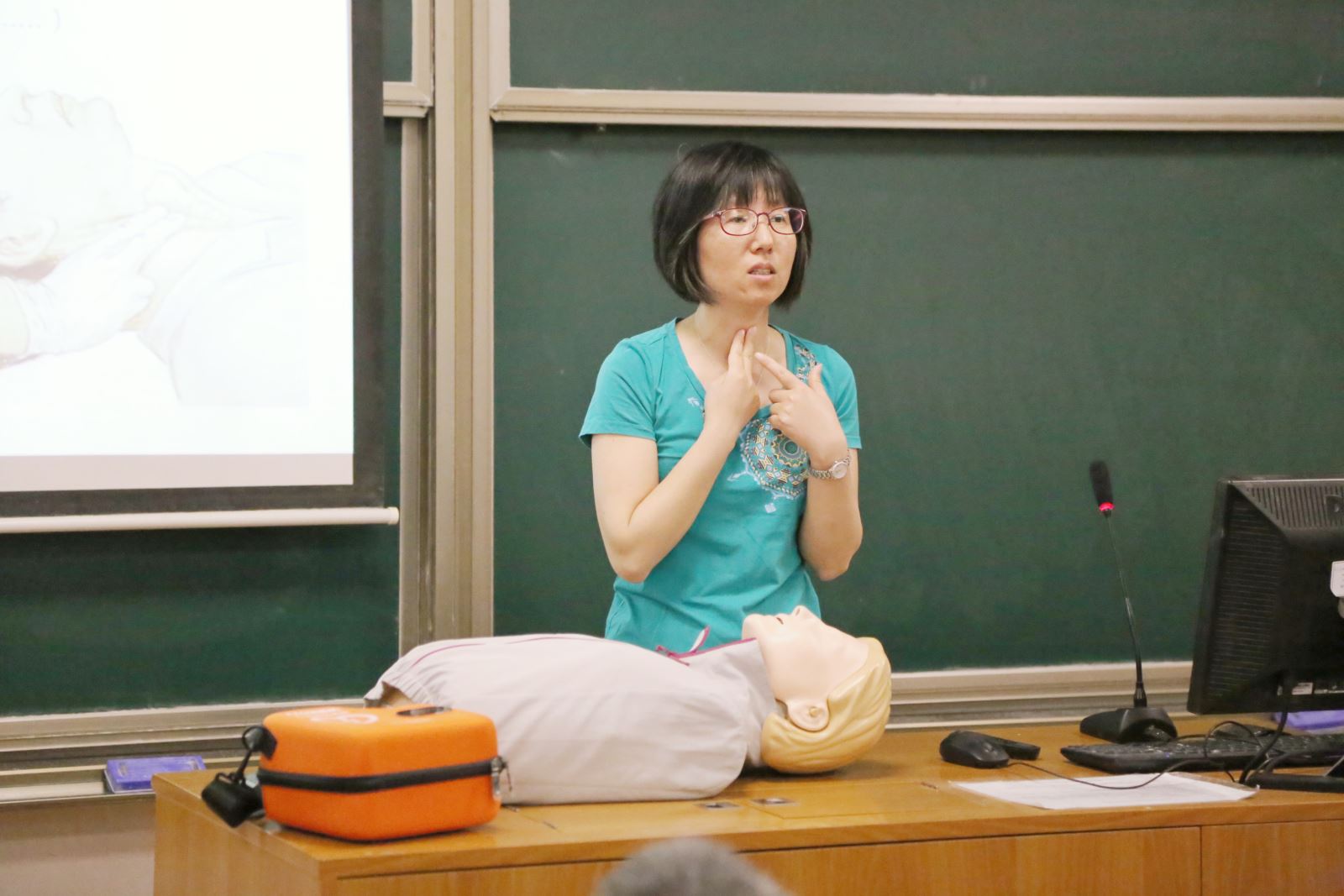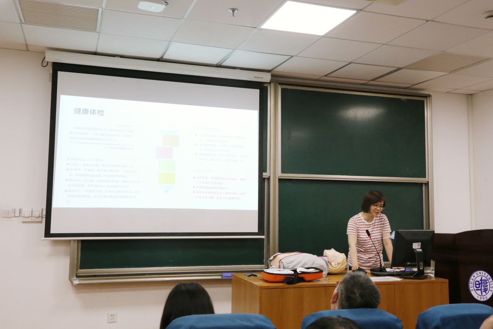 “健康关爱校园行”是由复旦大学校医院开展的“我为群众办实事”实践活动,通过开设健康宣传专题讲座,为师生进行健康教育,介绍教职工健康体检政策,提高教职工体检参检率。会上,校医院鲍建辉医生讲授了掌握急救技能的意义和“心肺复苏”的方法和技巧,示范使用CPR进行体外除颤,强调了时间就是生命,呼吁普及心肺复苏,共同守护生命。