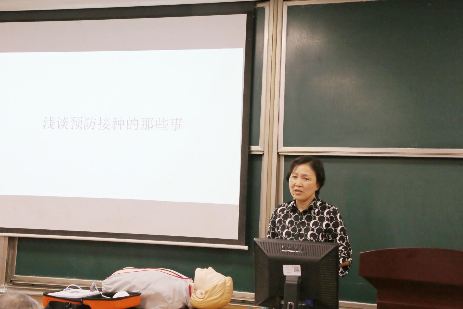 校医院防保科张一梅医生讲授了“浅谈预防接种的那些事”,详细介绍了疫苗的种类、生产制备、批签发和接种工作,同时也对疫苗接种的不适宜人群、不适症状及其处理作了讲解,从而加深了教职工对疫苗的科学认识,对疫苗接种工作有着更加积极的态度。