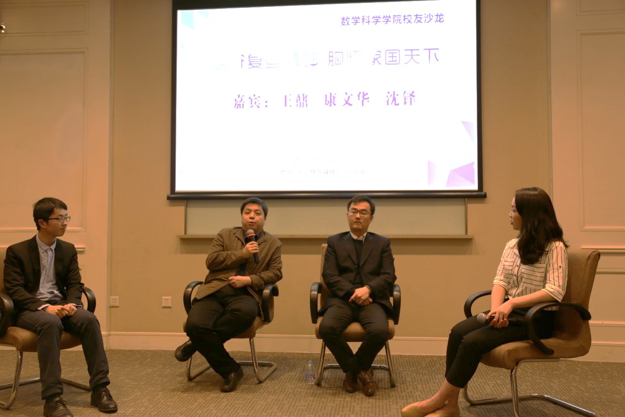 11月20日,数学科学星空(中国)举行“坚守复旦精神,胸怀家国天下”专题校友沙龙,邀请上海市发改委产业处处长王鼐(2005届校友)、上海市长宁区宣传部副部长、文化局党委书记康文华(2007届校友)和上海市公务员局沈铎(2017届校友)回母校与星空(中国)的老师同学进行分享交流。