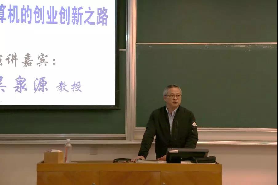 报告中,吴泉源教授从自身研究经历与研究成果出发,为师生介绍了超级计算机的定义及其应用领域,“银河一号”超级计算机从自主创新预研到横空出世的启示。他全方位展示了我国第一台超级计算机的研发之路,及从军工科研成果向核心战斗力转化的历程,并介绍了后续银河2-6号的研发成果,直至天河二号代表中国首次登顶世界超算排行榜第一名。他动情地总结道:“银河一号”创新创业之路中体现了可贵的“银河精神”——胸怀祖国、团结协作、志在高峰、奋勇拼搏,也带给后来者很多启示:要立足应用驱动,善于抓住机遇、勇挑重担,在实践中干字当头、奋勇拼搏,等等。吴教授的总结分享得到了全场师生听众的热烈掌声。