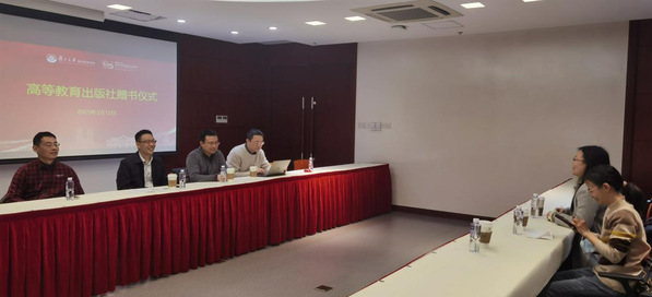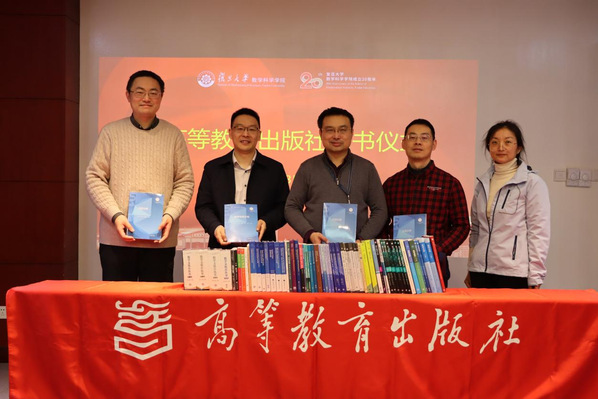 副院长王志强教授对捐赠表示了感谢,并充分肯定了与高教社的合作,尤其是数学领域本科教育教学改革试点工作计划(“101计划”)系列教材的出版工作,给予了高度的评价,在时间紧、任务重的困难面前,表现了极强的职业能力和高度的责任心,及时完成了出版任务。作者代表姚一隽、王凯教授,就“101计划”教材内容编写和后续计划作了介绍。