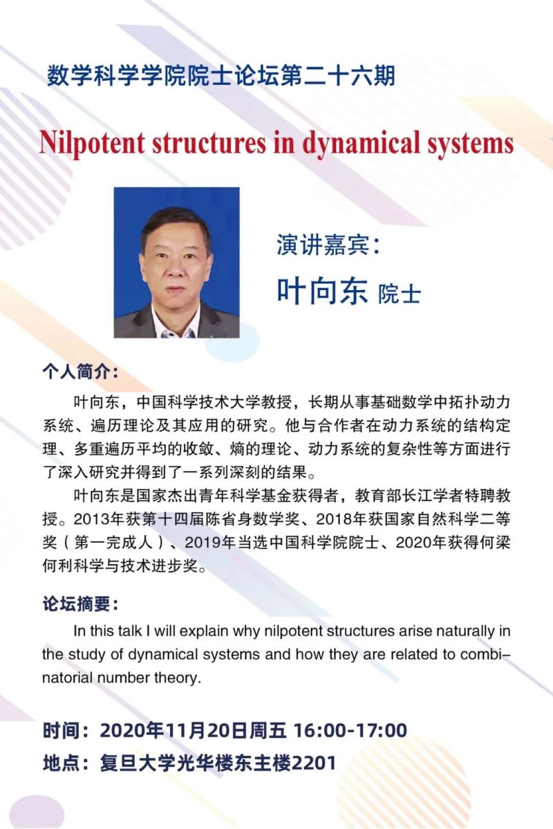 | Presentation Name: | 院士讲坛第二十六期:Nilpotent structures in dynamical systems |