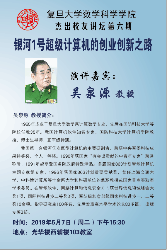| Presentation Name: | 杰出校友讲坛第六期:银河一号超级计算机创新创业之路 |
