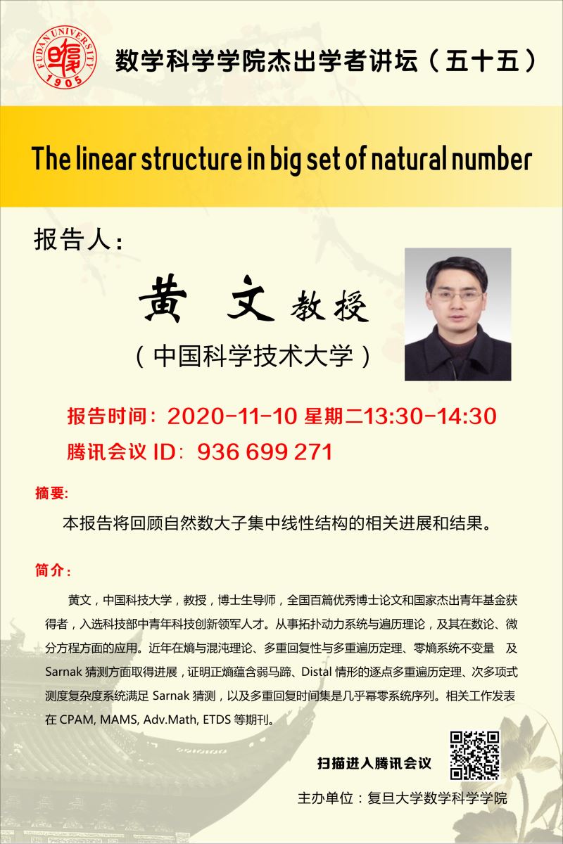 | Presentation Name: | 杰出学者讲坛(五十五):The linear structure in big set of natural number |
