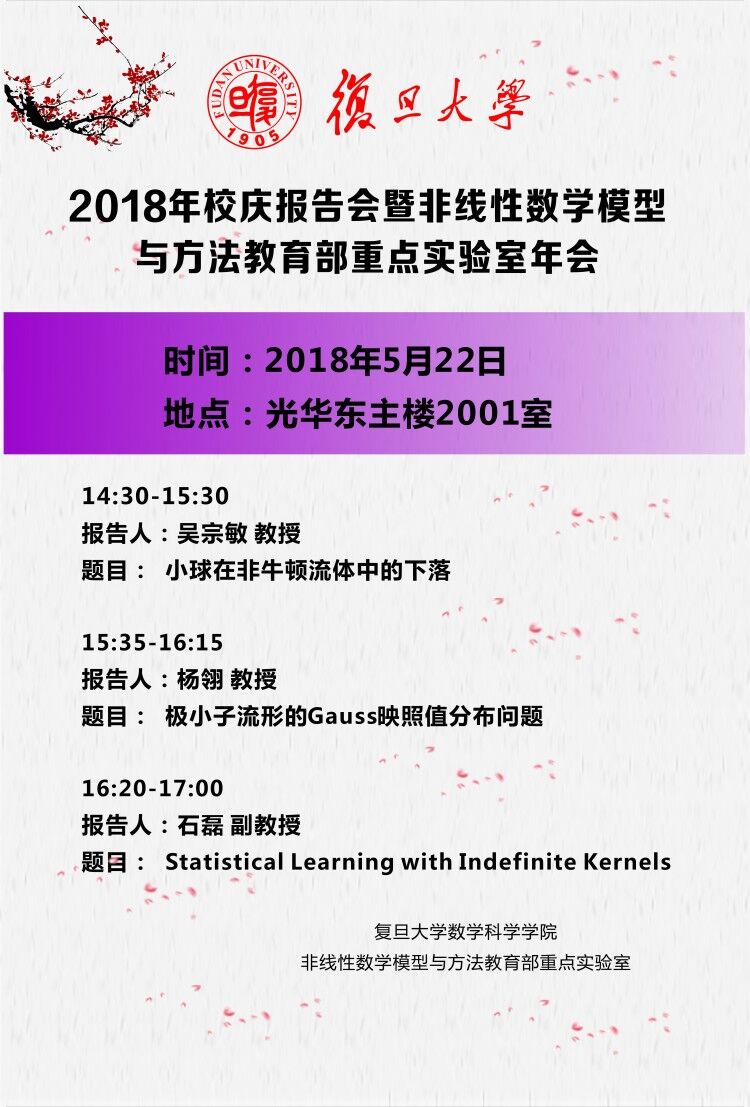 | Conference Name: | 2018年校庆报告会暨非线性数学模型与方法教育部重点实验室年会 |