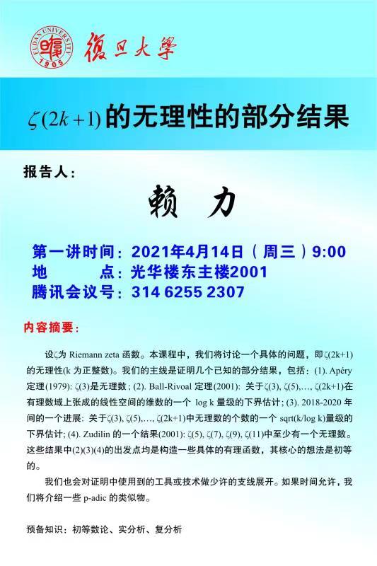 | Presentation Name: | ζ(2k+1)的无理性的部分结果 |