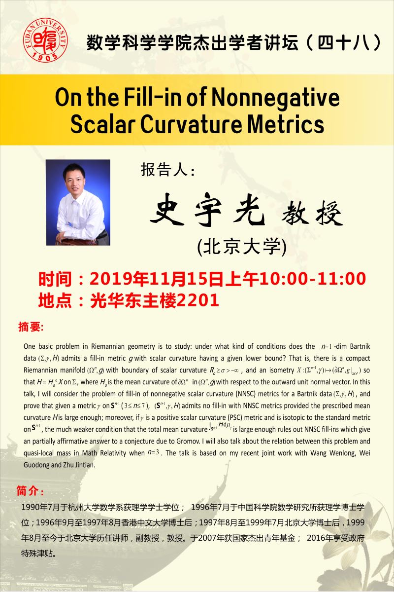 杰出学者讲坛(四十八):On the Fill-in of Nonnegative Scalar Curvature Metrics